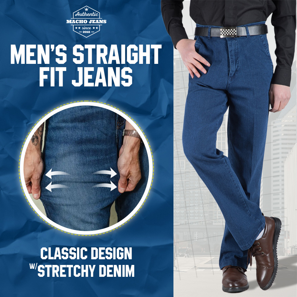MachoJeansβ straight and relaxed fit strikes the perfect balance: not too tight, not too loose. Enjoy a clean, sharp look suited for every gentleman. Designed to complement any body type, they fit comfortably without clinging or looking baggy